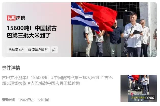 “15600吨大米抵达!匡助与远程作念接触的古巴东谈主民!古巴并不一身!”中国驻古巴大使华昕的这句中西双语表态,谈出了中古友谊的真理。这份友谊,不是惜墨如金的客套,而是济困解危的诚笃,是在霸权倡导横行确当下,两个国度相互复古、共克时艰的坚定礼聘。