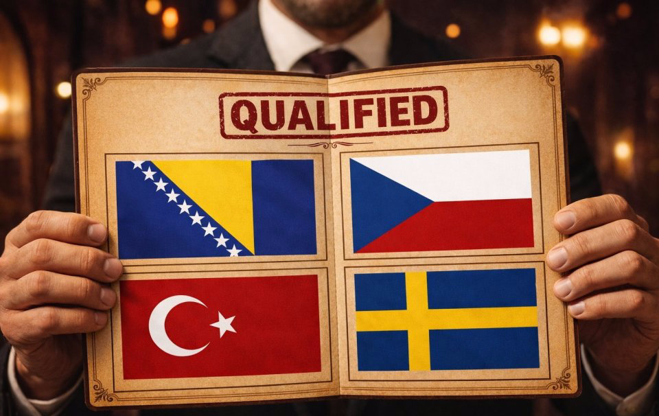 欧洲区附加赛方面,捷克、土耳其、瑞典和波黑,分别淘汰了丹麦、科索沃、波兰和意大利,UEDBET官网拿到欧洲区终末4张纵贯好意思加墨天下杯的参赛门票。老牌朱门意大利,缺憾承接3届无缘天下杯。