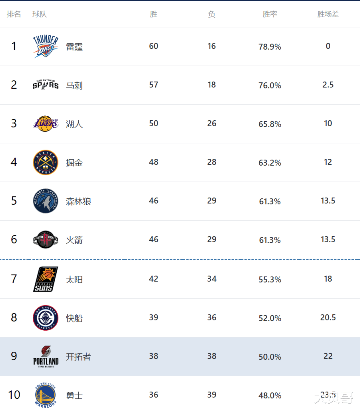 北京技能4月1日,天然今天定约当中的比赛未几,然而跟着老例赛的长远,西部的排行地点徐徐开朗了,在今天的比赛打完毕之后,加上之前的雷霆和马刺,4支球队还是建造了季后赛的限额,不外分区的排行可能还会有所变化,当今西部3-6位、附加赛区的8-10位仍有可能会有变化,咱们来望望最新的排行。