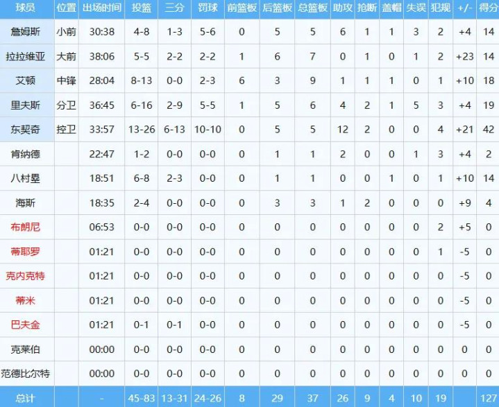 最终湖东说念主在主场127-113打败骑士,雄厚我方的西部第三位置。