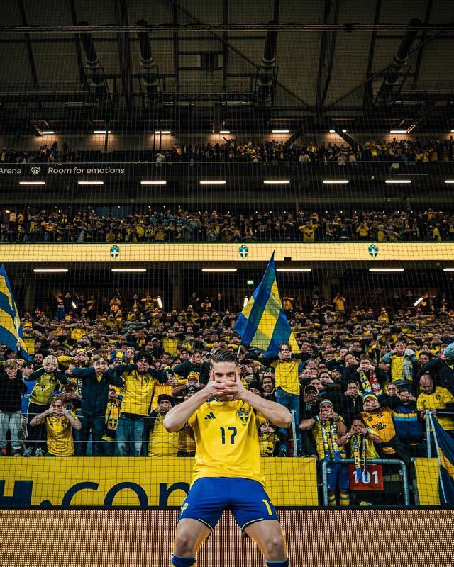 赛后,瑞典球迷们挥舞旗子、欢欣股东,而哲凯的笑颜也感染了全场,他邀请照相师为他和球迷们一同拍照,而他们也集体作念出了哲凯符号性的庆祝当作,这一张相片也定格了这次属于球迷与球员的共同荣耀瞬息。