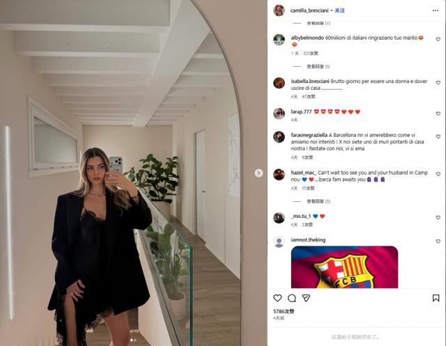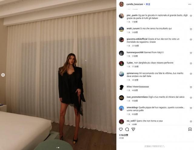 巴斯托尼的内助卡米拉·布雷西亚尼ins也被网友黑白,咫尺还是关闭了指摘。