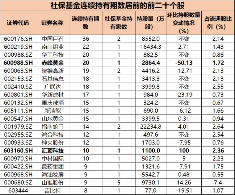 资源股方面,除中国铝业、云铝股份外,锂业龙头藏格矿业,以及黄金板块的山东黄金、山金国际,雷同备受社保基金醉心。