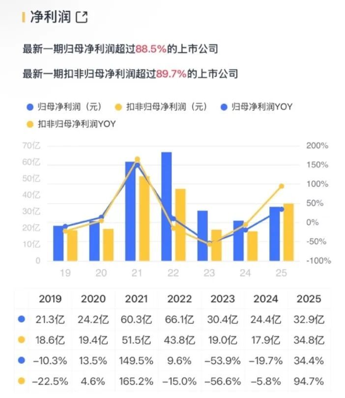 深究其捏仓逻辑,中国巨石是各人玻璃纤维行业的开发者,即使在行业周期波动中,公司也展现出较强的韧性。畴前七年,公司沉静盈利,尤其在2025年,其扣非净利润同比接近翻倍增长。