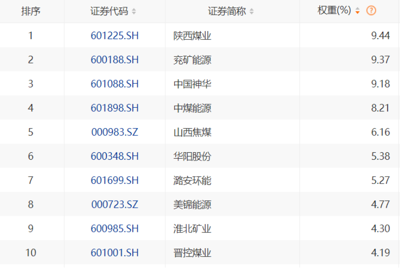 煤炭ETF国泰(515220.SH)追踪中证煤炭指数(399998.SZ),其主要聚焦在能源煤和焦煤,二者权重占比接近90%。