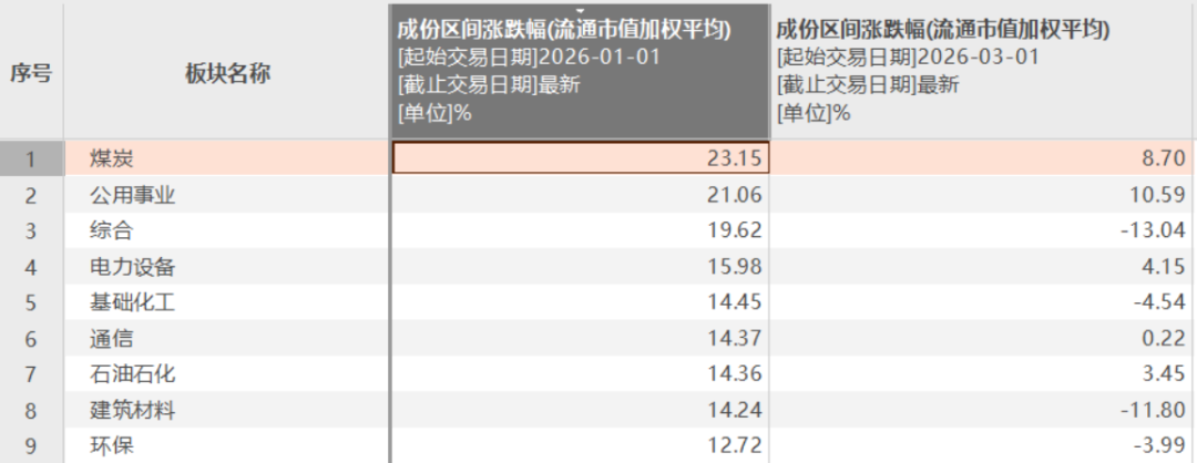 煤炭板块年内领跑。