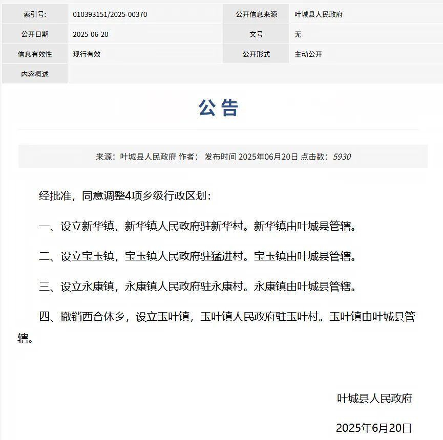 撤1乡,设4镇(图:xjyc.gov.cn)▼