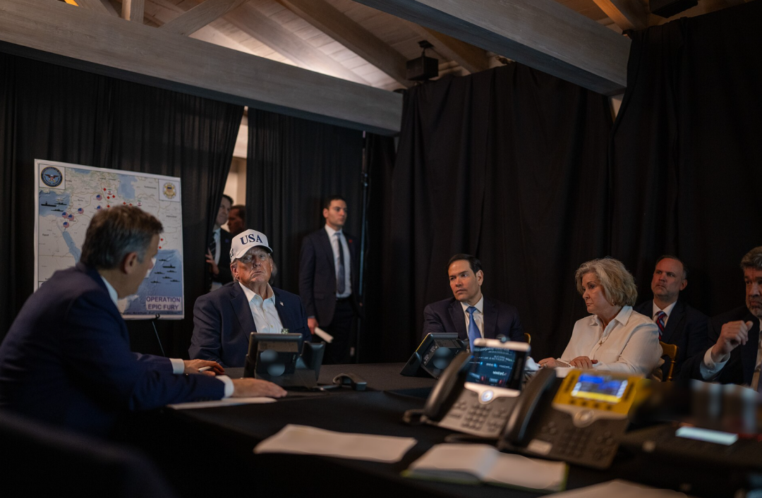▲特朗普等东谈主在海湖庄园监督对伊朗的空袭(图/视频截图)