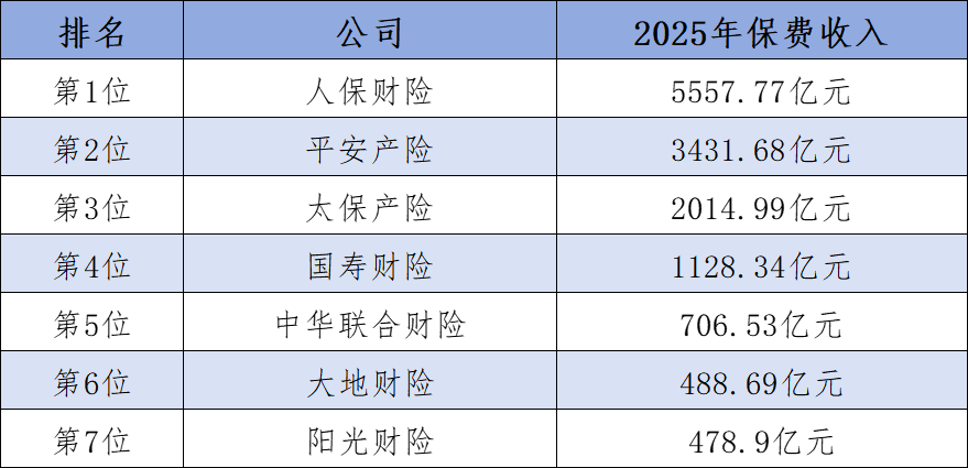 2025年保费收入排行