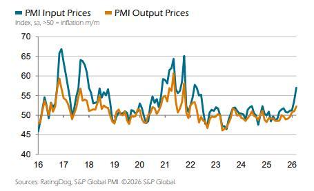 与此同期,插足品价钱通胀加快至2022年3月以来最高水平,供应商交货工夫拉长幅度创逾三年新高。