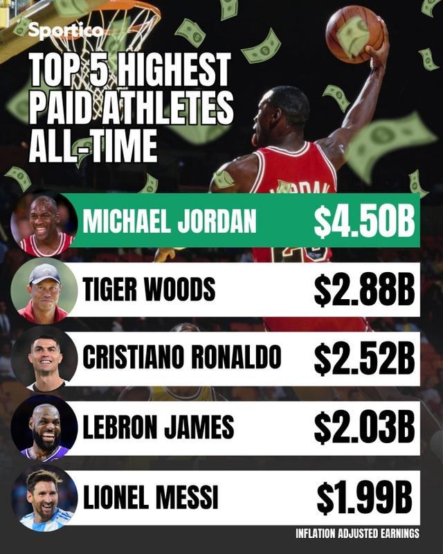 UEDBET中国官方网站 史上畅通员收入TOP50出炉,乔丹断层第一!C罗詹姆斯梅西3-5,库里19
