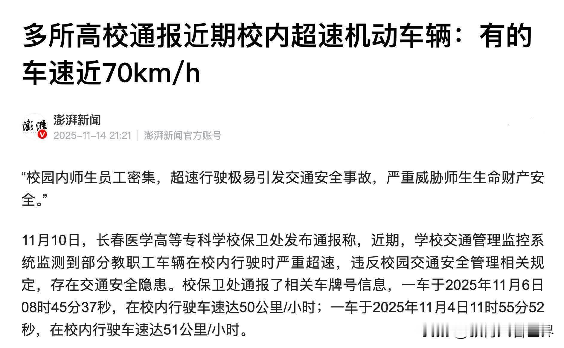 我们把视角拉高少许,别只盯着那17分钟的败兴。最近这一两年,高校里的“车”和“东谈主”的矛盾,其实照旧到了一个终点危机的临界点。就在前年,媒体报谈还有高校通报学生在校内骑电动车时速飙到69公里,这是什么主见?那然而在东谈主群密集的校园骨干谈,不是F1赛车场。还有的学校,因为东谈主车混行,哪怕有降速带,也未免出擦挂甚而更严重的事故。