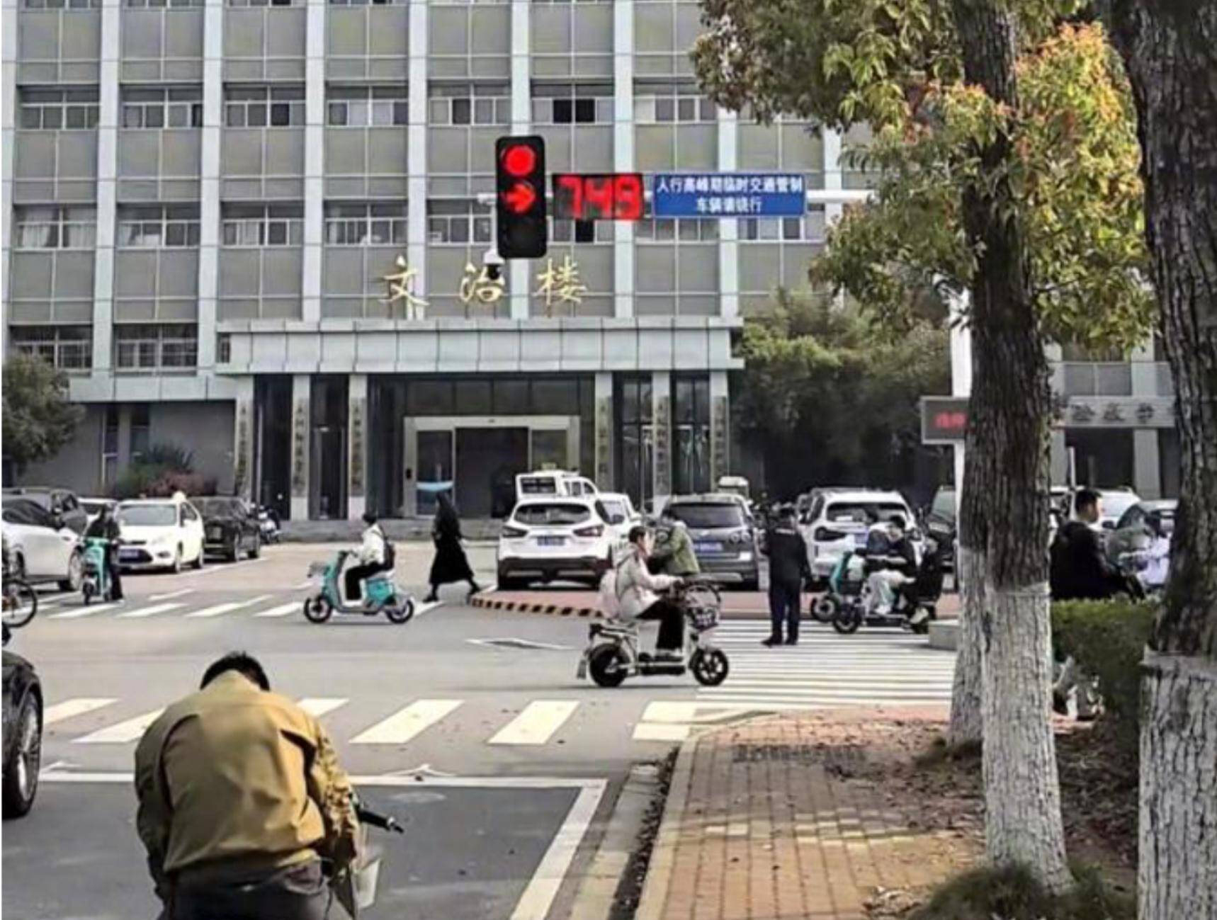 要是你最近途经中南财经政法大学南湖校区的文治楼,大致率会以为那里的红绿灯“疯”了。
