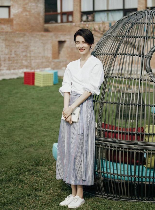 uedbet(中国)官方网站 43岁“车晓”又好意思出圈,穿蓝色连衣裙现赫本式优雅,端淑又高等