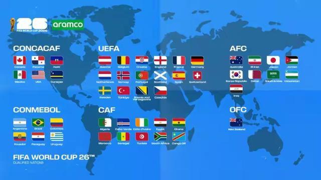 2026年好意思加墨寰宇杯48队照旧一起归位,这是寰宇杯历史上最大的群众庭,迅速球的地舆位置来看,北至北极圈的挪威,南至南极洲隔邻的阿根廷,东至东12区的新西兰,西至西11区的好意思国,径直横跨了19个时区。2026寰宇杯很高大,阿拉伯地区有8队晋级,也出身了4支寰宇杯新军,但仍留有缺憾,冠军球队和一些球星依然缺席了历史最为高大的一届寰宇杯-2026年好意思加墨寰宇杯。